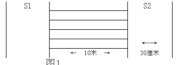 場地器材:10米長的直線跑道若干,在跑道的兩端線(S1和S2)外30厘米處各劃一條線(圖1)。木塊(5厘米×10厘米)每道3塊,其中2塊放在S2線外的橫線上,一塊放在S1線外的橫線上。秒表若干塊,使用前應進行校正。