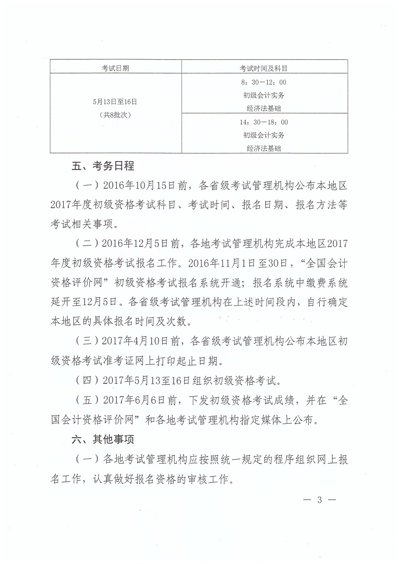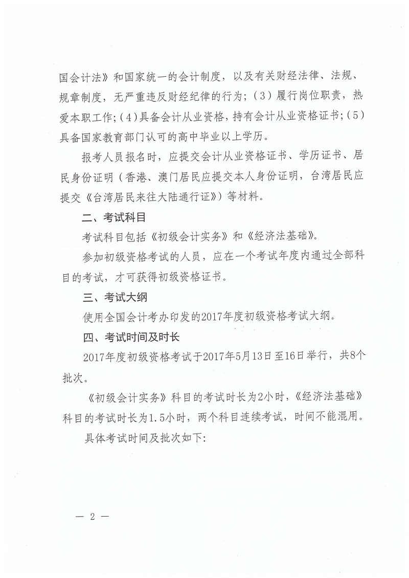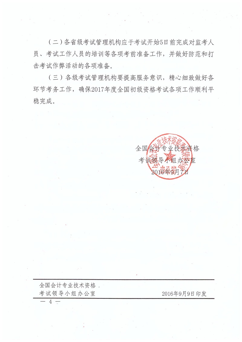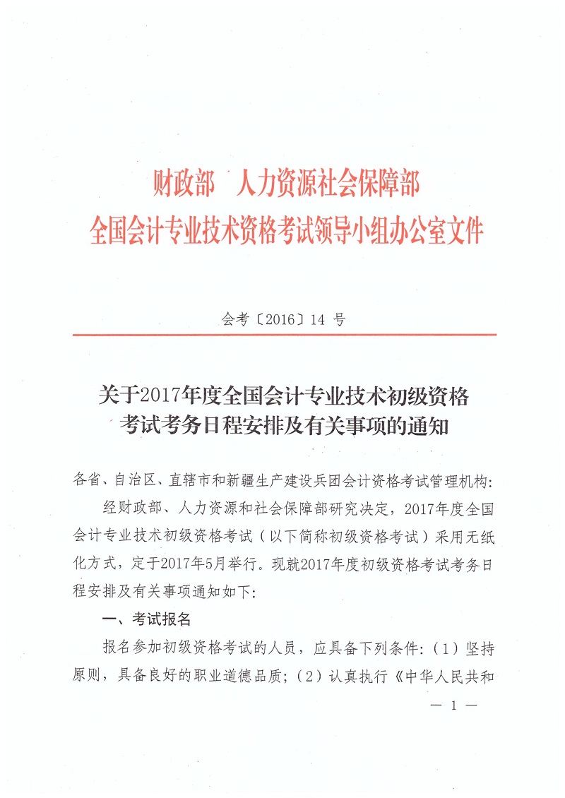 2017年全國會(huì)計(jì)專業(yè)技術(shù)初級(jí)資格考試通知