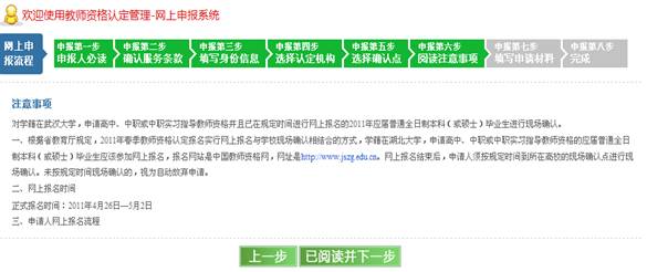認真閱讀“申報人必讀”內(nèi)容,尤其注意您應(yīng)該選擇的教育行政部門(即認定機構(gòu))。閱讀完必讀內(nèi)容后,點擊“下一步”按鈕,進入申報第二步。