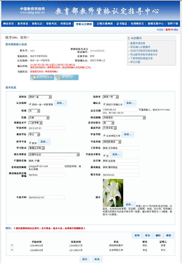 四、申請人登錄網(wǎng)上報名系統(tǒng)后修改和查看申請信息