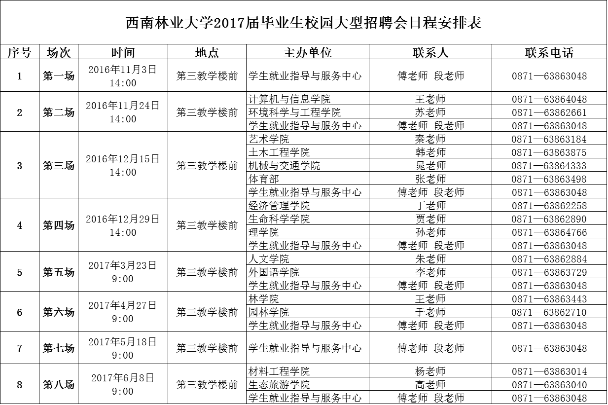 西南林業(yè)大學(xué)2017屆畢業(yè)生校園大型招聘會(huì)日程安排表