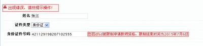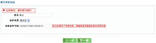 未參加全國統(tǒng)考申請人網(wǎng)上報名時填寫完“個人身份信息”后不能進行下一步的操作,并出現(xiàn)錯誤提示,怎么辦?