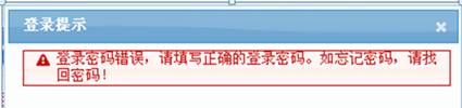 1、登錄時出現(xiàn)“登錄密碼錯誤,請?zhí)顚懻_的登錄密碼。如忘記密碼,請找回密碼的提示,如下圖,怎么辦?