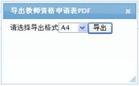 申請人登錄網(wǎng)上報名系統(tǒng)后,在頁面右上方“認定提示”欄中有“導(dǎo)出教師資格申請表PDF”鏈接,點擊該鏈接,根據(jù)申請表打印紙張大小要求,選擇導(dǎo)出格式,點擊“導(dǎo)出”按鈕,教師資格認定申請表則以PDF的格式呈現(xiàn),點擊PDF閱讀器里的保存按鈕,教師資格申請表則以PDF格式保存到本地機上。(您的計算機里必須安裝PDF閱讀器才能打開下載的PDF格式申請表)