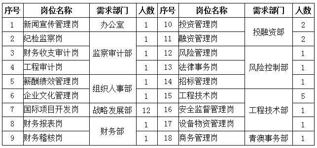 為落實(shí)國(guó)家“一帶一路”戰(zhàn)略,適應(yīng)公司發(fā)展需要,經(jīng)研究,決定面向社會(huì)公開招聘相關(guān)人員,現(xiàn)就有關(guān)事宜公告如下: