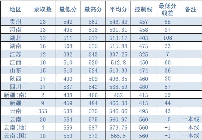注:云南(地)、云南(國(guó))、新疆(南)分別對(duì)應(yīng)云南省地方專項(xiàng)計(jì)劃、云南省國(guó)家專項(xiàng)計(jì)劃、新疆南疆貧困單列計(jì)劃。