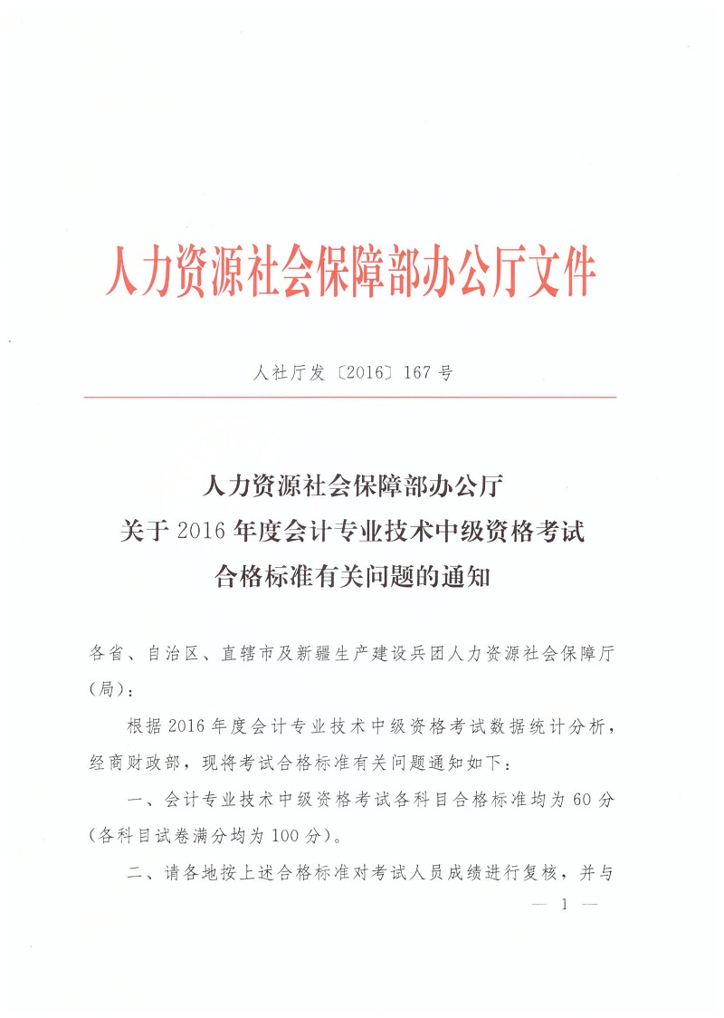 2016年全國(guó)會(huì)計(jì)專業(yè)技術(shù)中級(jí)資格考試合格標(biāo)準(zhǔn)通知