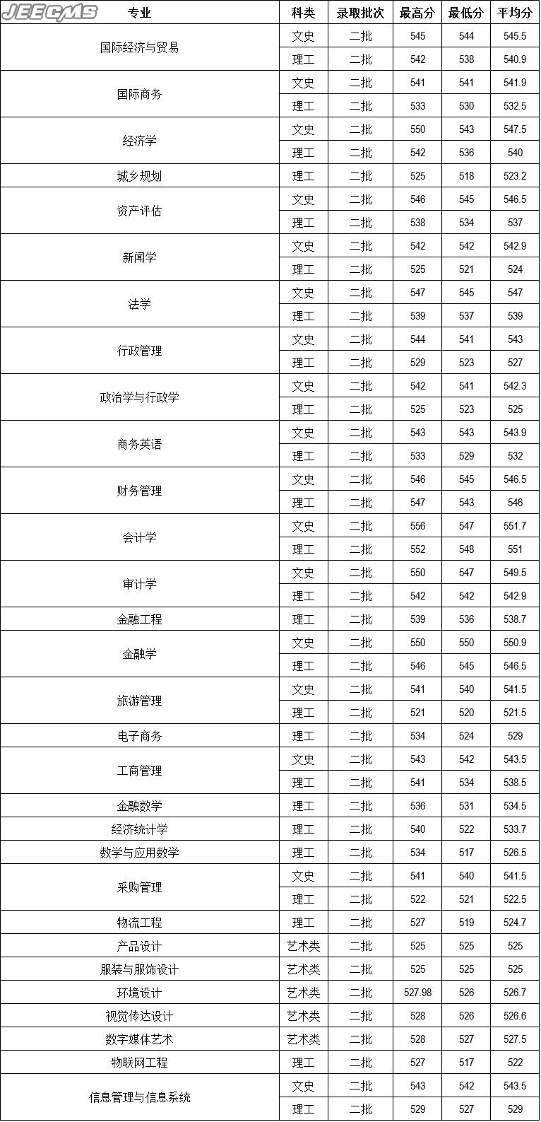云南財(cái)經(jīng)大學(xué)2016年浙江省錄取情況一覽表