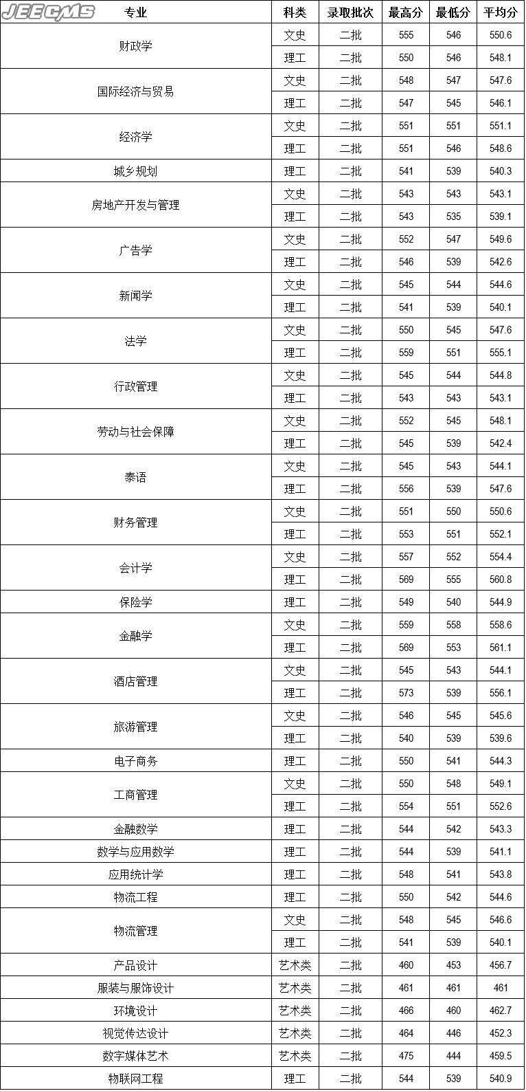 云南財(cái)經(jīng)大學(xué)2016年上海市錄取情況一覽表