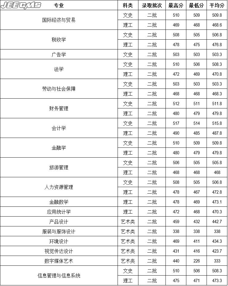 云南財經(jīng)大學(xué)2016年山西省錄取情況一覽表