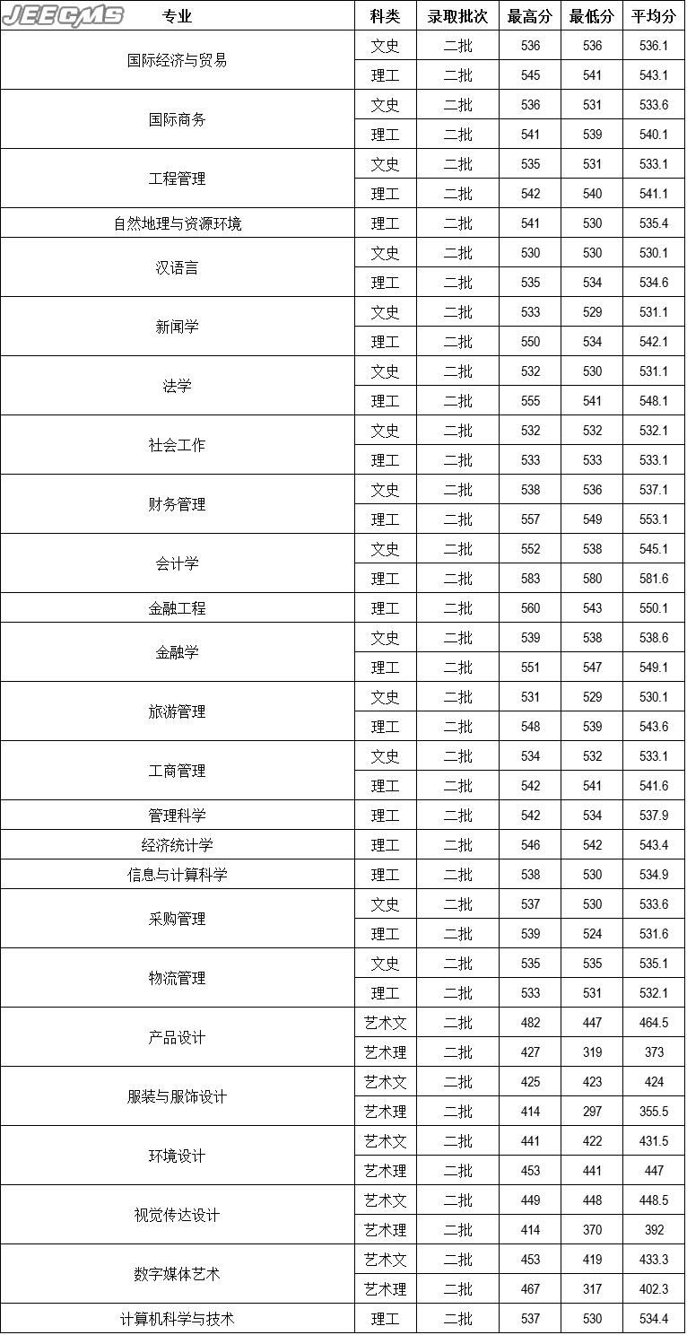 云南財經(jīng)大學2016年山東省錄取情況一覽表