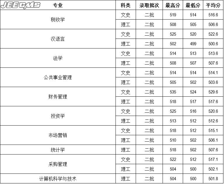 云南財經大學2016年內蒙古自治區(qū)錄取情況一覽表