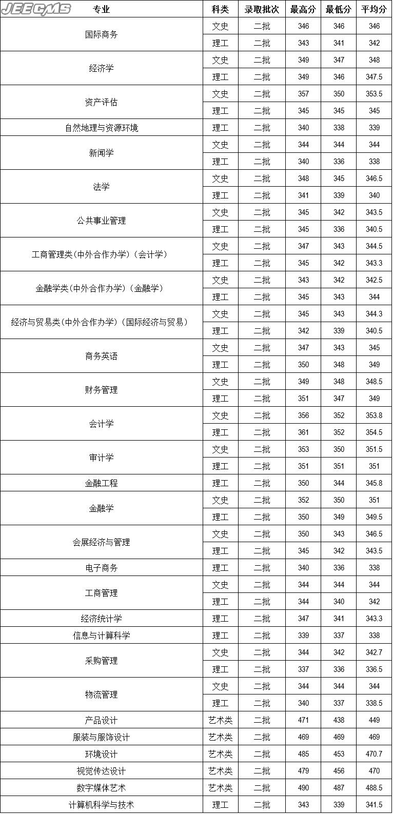 云南財經(jīng)大學2016年江蘇省錄取情況一覽表