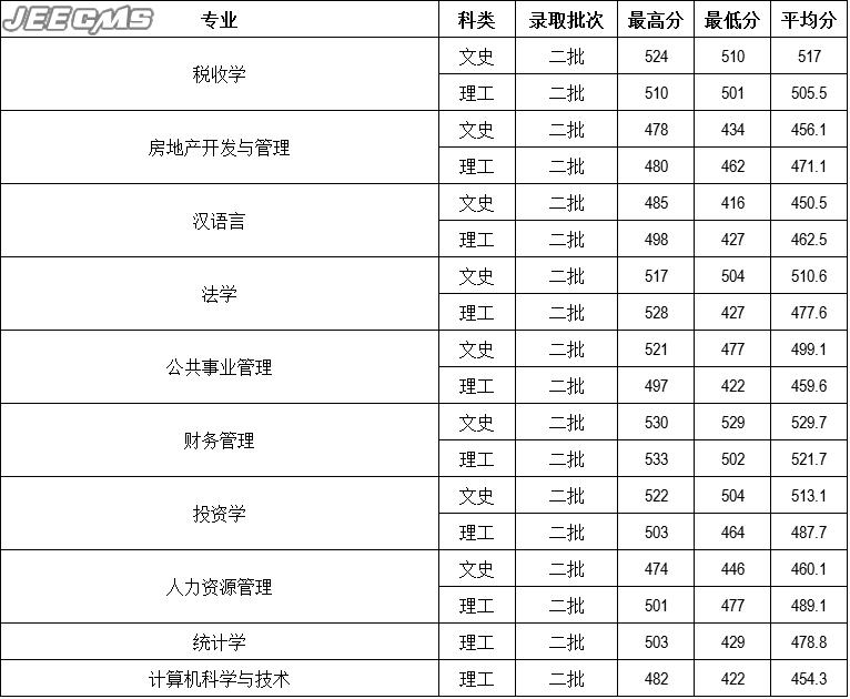 云南財經(jīng)大學2016年吉林省錄取情況一覽表