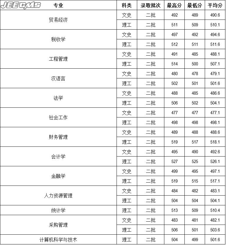 云南財(cái)經(jīng)大學(xué)2016年湖北省錄取情況一覽表
