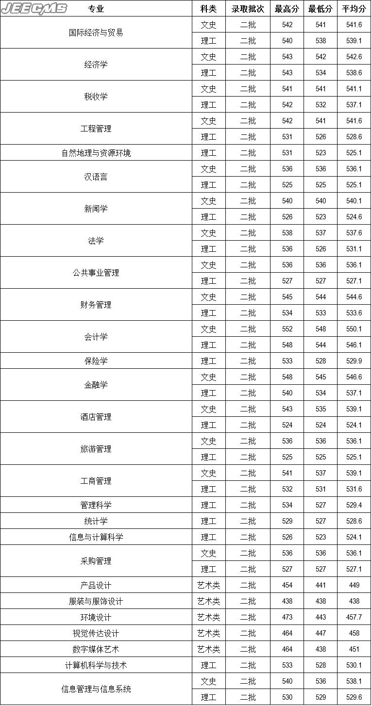 云南財(cái)經(jīng)大學(xué)2016年海南省錄取情況一覽表
