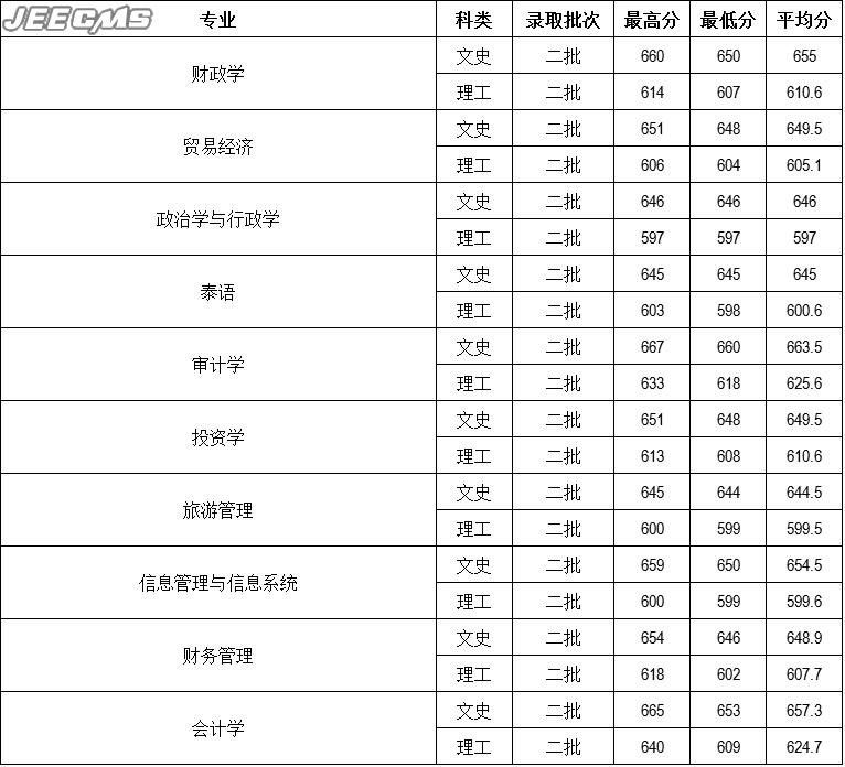 云南財(cái)經(jīng)大學(xué)2016年海南省錄取情況一覽表