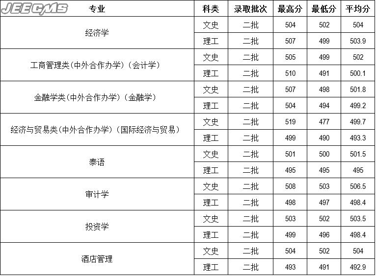 云南財經(jīng)大學2016年廣東省錄取情況一覽表