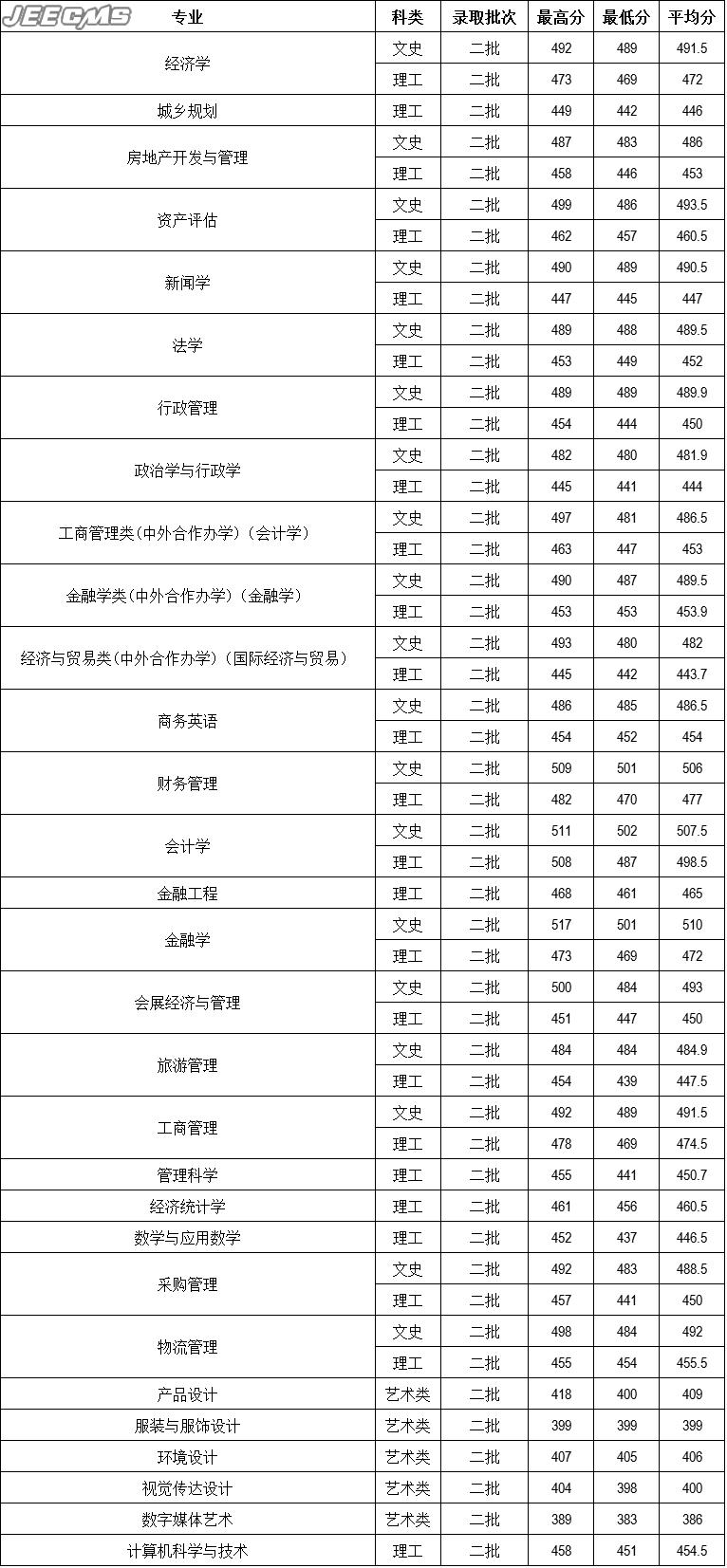 云南財經(jīng)大學2016年福建省錄取情況一覽表