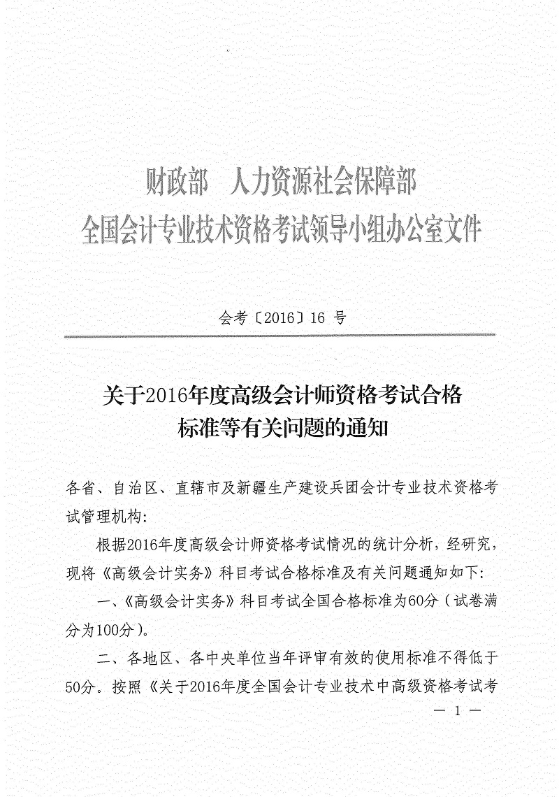 2016年度高級會計(jì)師資格考試合格標(biāo)準(zhǔn)通知