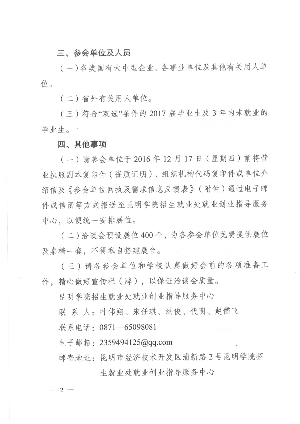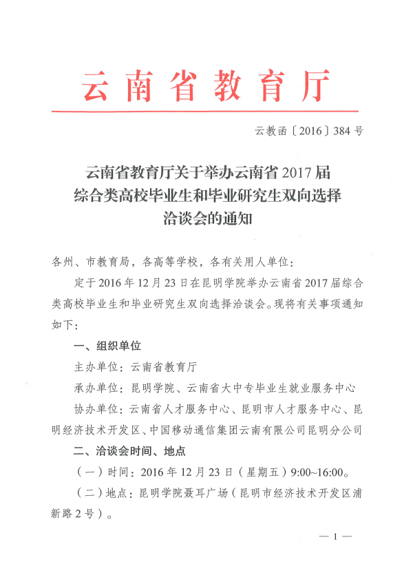 昆明學(xué)院2017屆綜合類畢業(yè)生雙向選擇洽談會(huì)通知