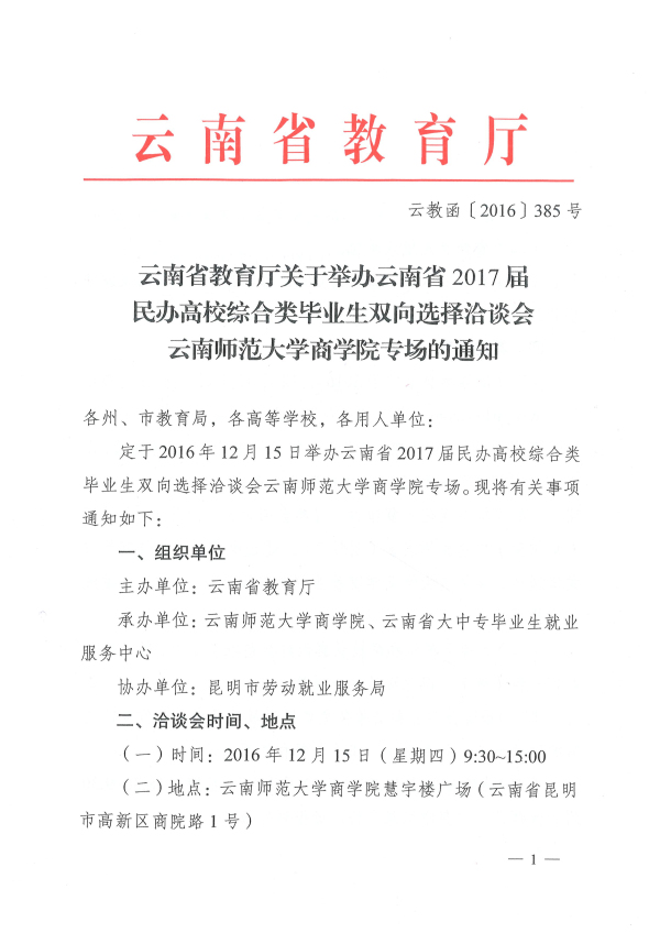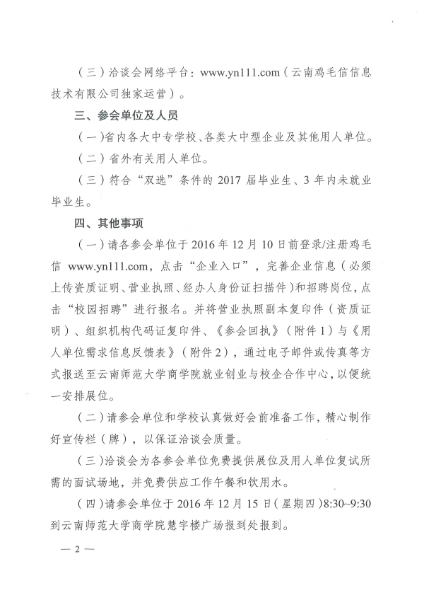 云南師范大學(xué)商學(xué)院2017屆民辦綜合類畢業(yè)生雙向選擇洽談會通知