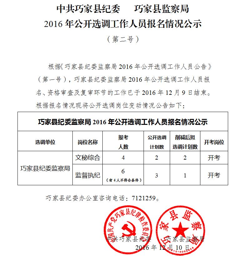 縣紀(jì)委監(jiān)察局公開(kāi)選調(diào)工作人員報(bào)名情況公示
