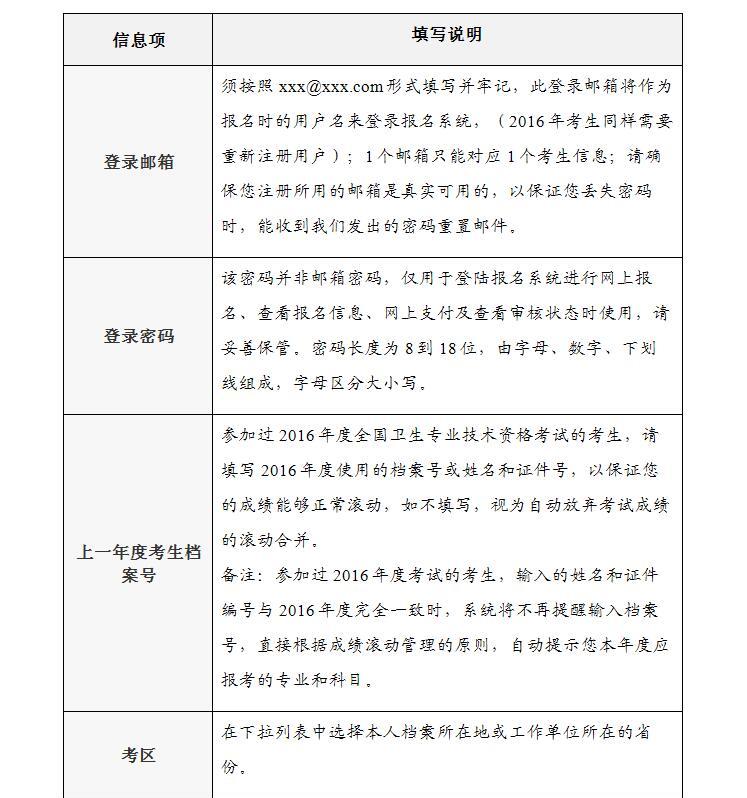 2017年衛(wèi)生專業(yè)技術(shù)資格考試報名填表說明