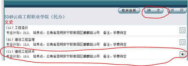 第六步,在“院校志愿信息列表”中選擇“(5349)云南工程職業(yè)學(xué)院”,點(diǎn)擊