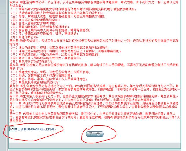第三步,在“□我已認(rèn)真閱讀并知曉以上內(nèi)容”前,打“√”,,然后點(diǎn)擊“下一步”