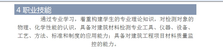 建筑材料檢測技術專業(yè)與省內(nèi)多家檢測單位及建筑材料相關企業(yè)建立了良好的合作關系,就業(yè)率一直保持較高水平,畢業(yè)生得到就業(yè)單位的認可。