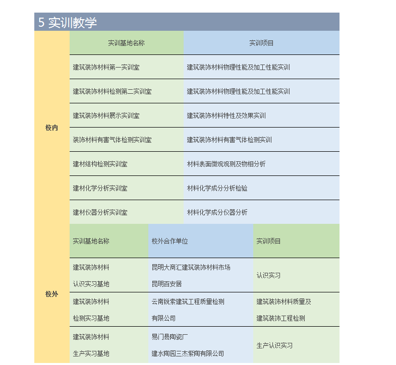 專業(yè)實訓基地是云南省高職高專院校省級示范實習實訓(校內(nèi))基地和省“建材專業(yè)實習實訓教學基地”,擁有“中央控制室模擬仿真系統(tǒng)”、“材料結(jié)構檢驗中心”等多個在全國同類院校中處于領先水平,結(jié)合生產(chǎn)實際,注重培養(yǎng)學生動手能力的實訓中心。