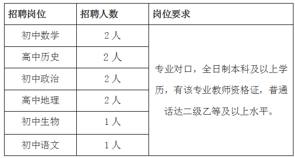 隨著我校教育教學(xué)質(zhì)量和社會聲譽的不斷提升,根據(jù)學(xué)校的實際需要特面向社會公開招聘外聘教師10名(不帶編制)。