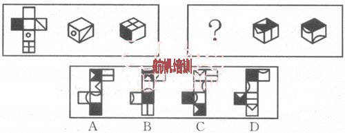 一、圖形推理。請(qǐng)從所給的四個(gè)選項(xiàng)中,選擇最合適的一個(gè)填入問號(hào)處。使之呈現(xiàn)一定的規(guī)律性。