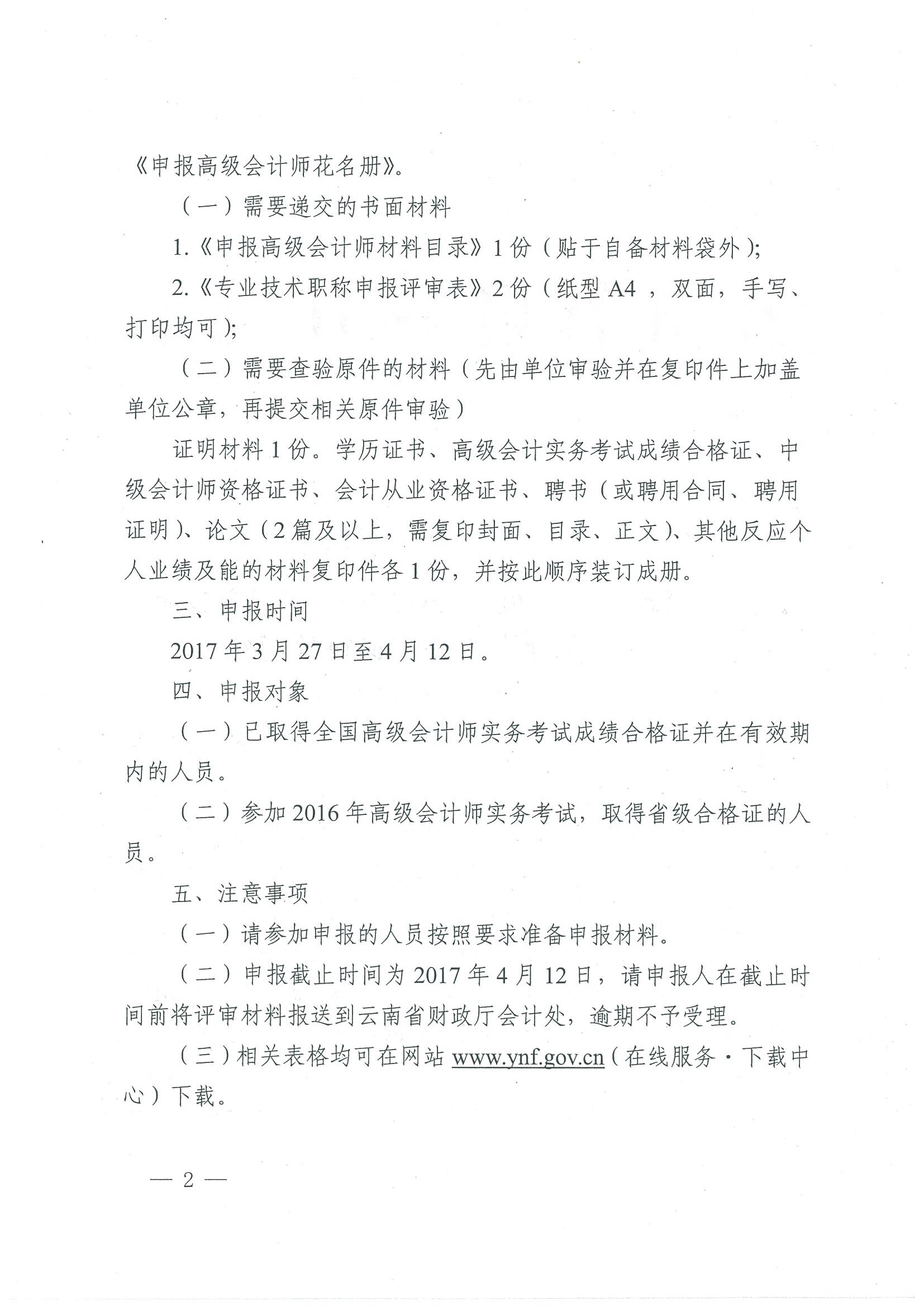 云南省財政廳關(guān)于報送2017年度高級會計師(副高)職稱資格評審材料的通知 (云財會〔2017〕35號).pdf
