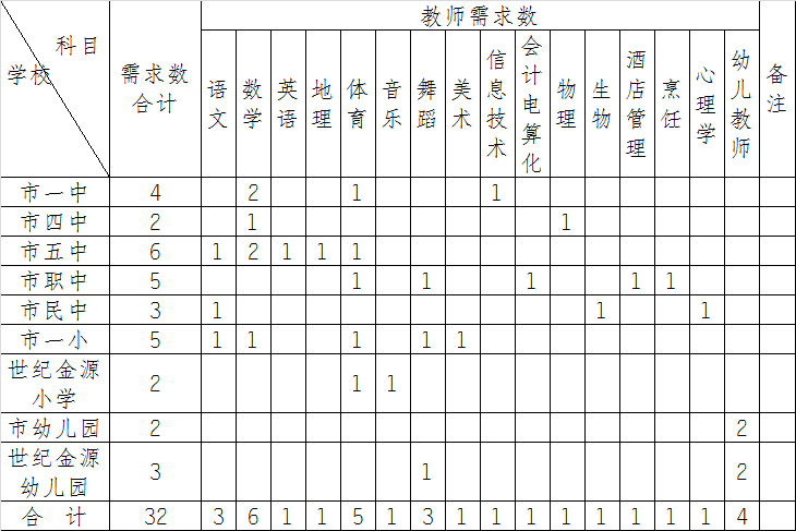共計崗位32個(詳見附件《景洪市2017年中小學、幼兒園引進教師需求計劃表》)。