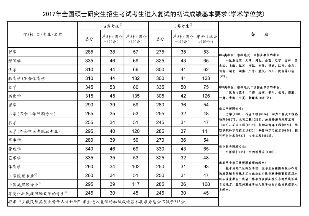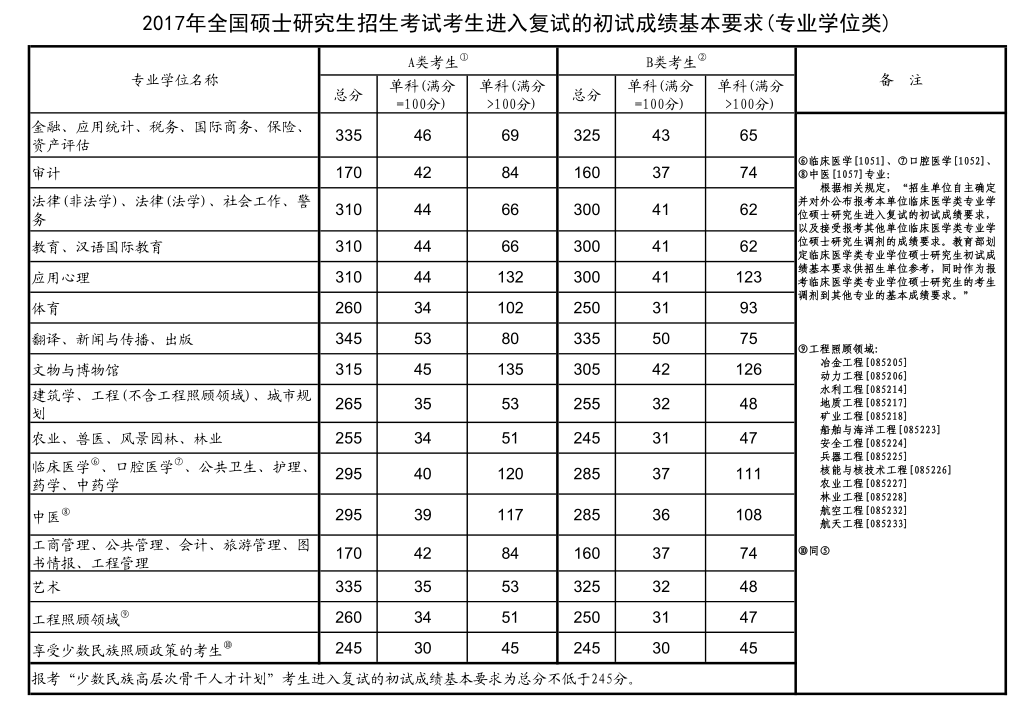 云南省2017年全國(guó)碩士研究生招生考試復(fù)試初試成績(jī)基本要求