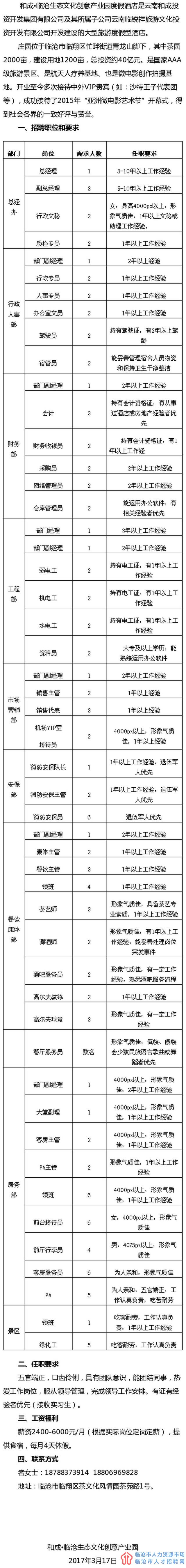 和成臨滄生態(tài)文化創(chuàng)意產(chǎn)業(yè)園2017年招聘啟事