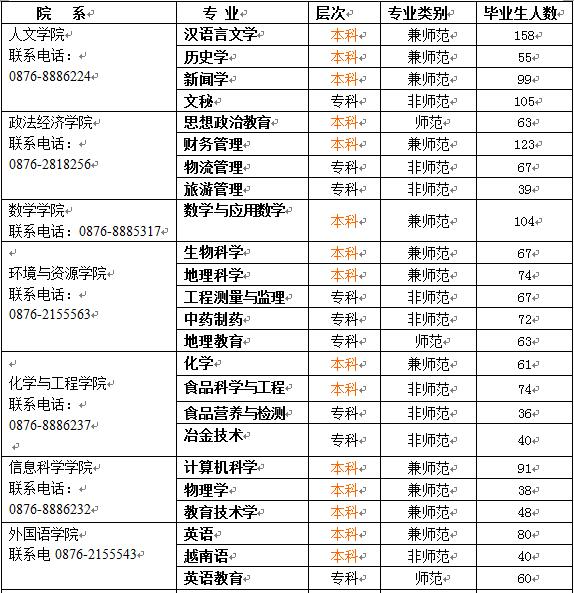 2017年,我校有本科24個(gè)專業(yè)、???4個(gè)專業(yè)共2458名畢業(yè)生(附件1:文山學(xué)院2017屆畢業(yè)生專業(yè)情況簡(jiǎn)表)