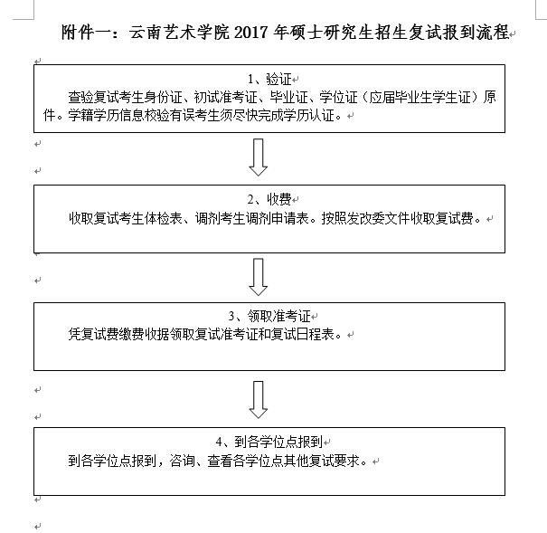 附件一:云南藝術(shù)學(xué)院2017年碩士研究生招生復(fù)試報到流程