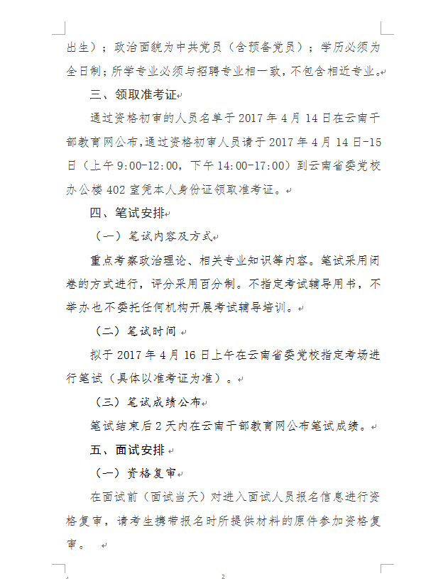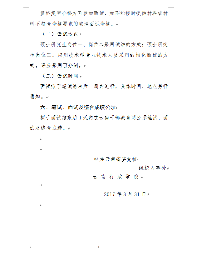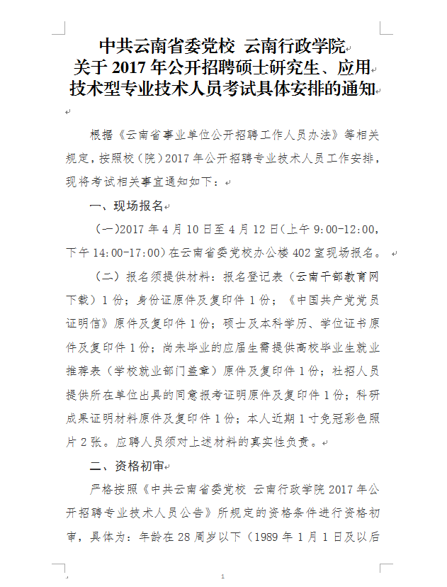 中共云南省委黨校、云南行政學(xué)院2017年招聘考試具體安排通知