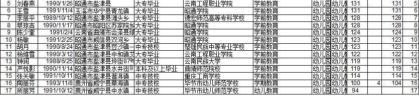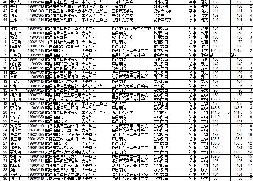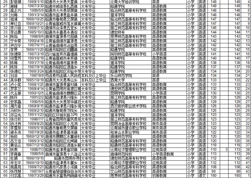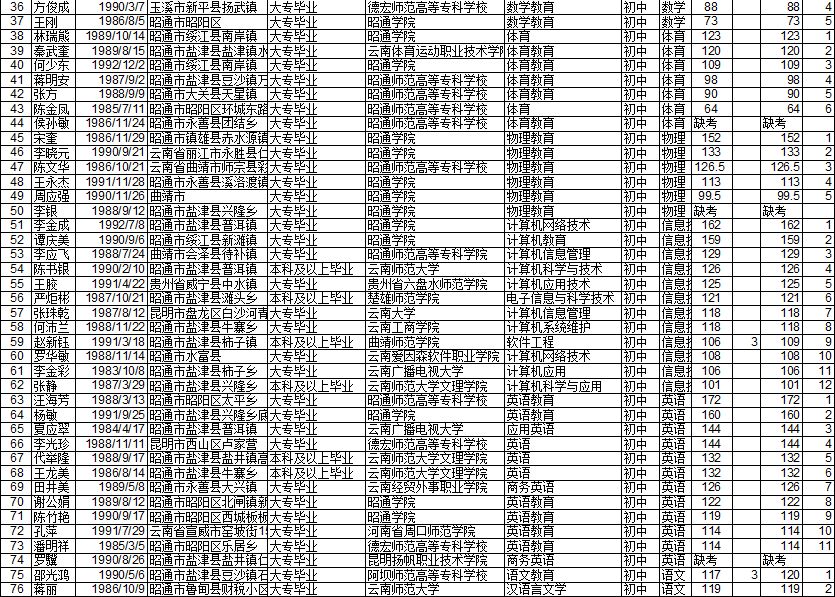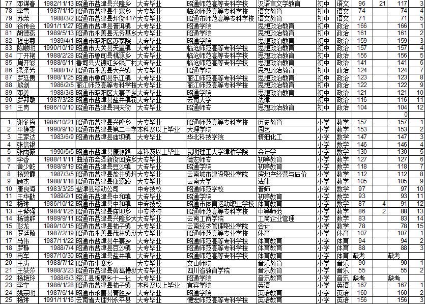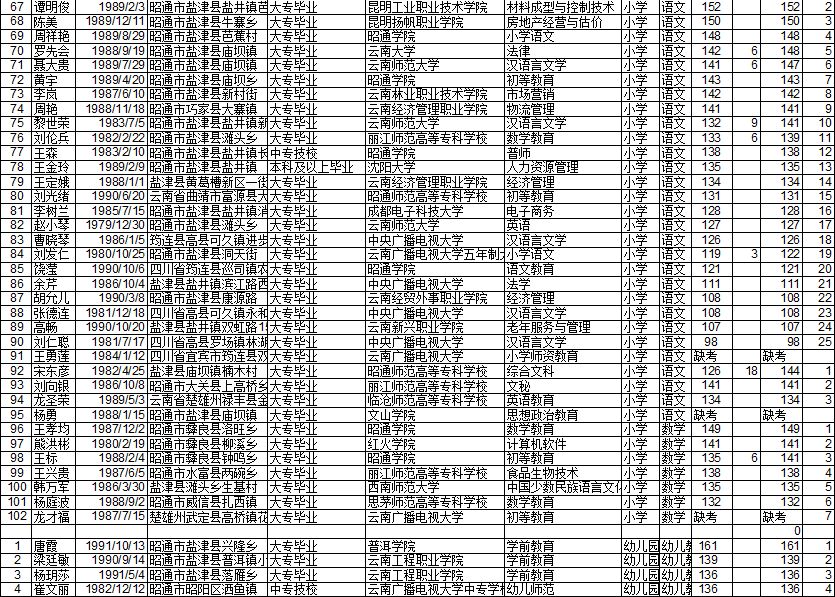 昭通市鹽津縣2013年村以下校點小學(xué)教師總成績公示