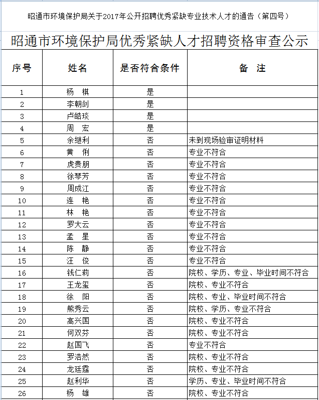 2017年昭通市環(huán)境保護局優(yōu)秀緊缺人才招聘資格審查公示