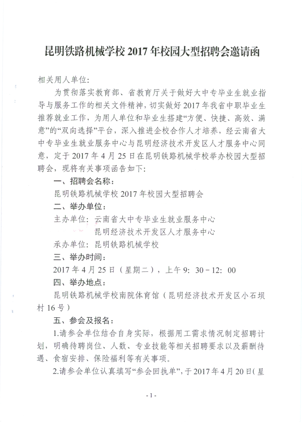 昆明鐵路機械學校2017年校園大型招聘會通知
