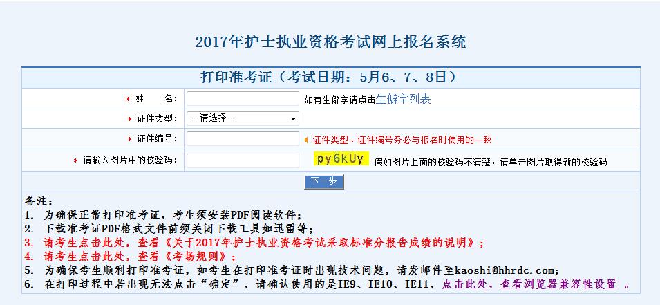 2017年護(hù)士資格證準(zhǔn)考證打印入口