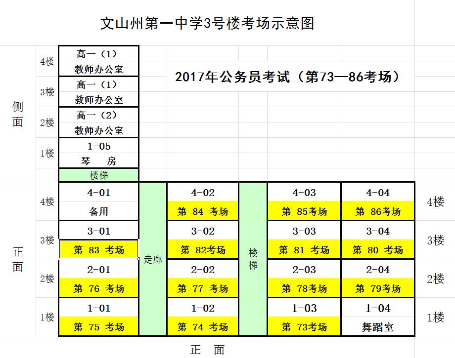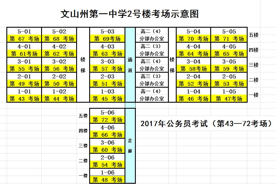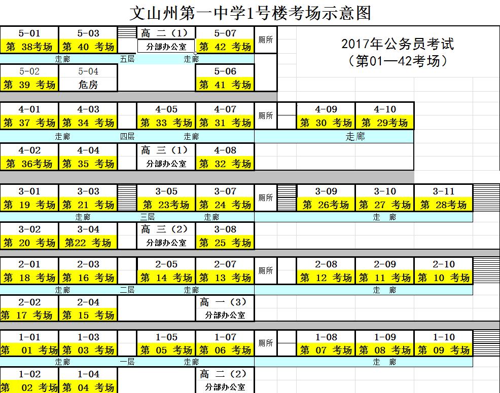 2017年文山州第一中學公務員考試考點考場分布示意圖