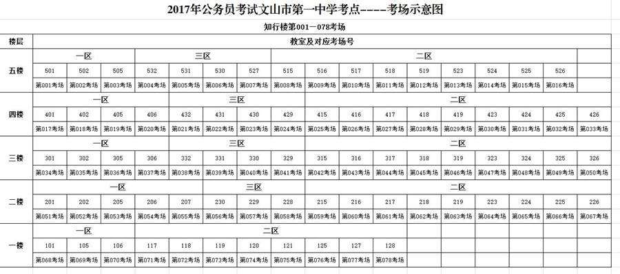 2017年文山市第一中學(xué)公務(wù)員考試考點考場分布示意圖
