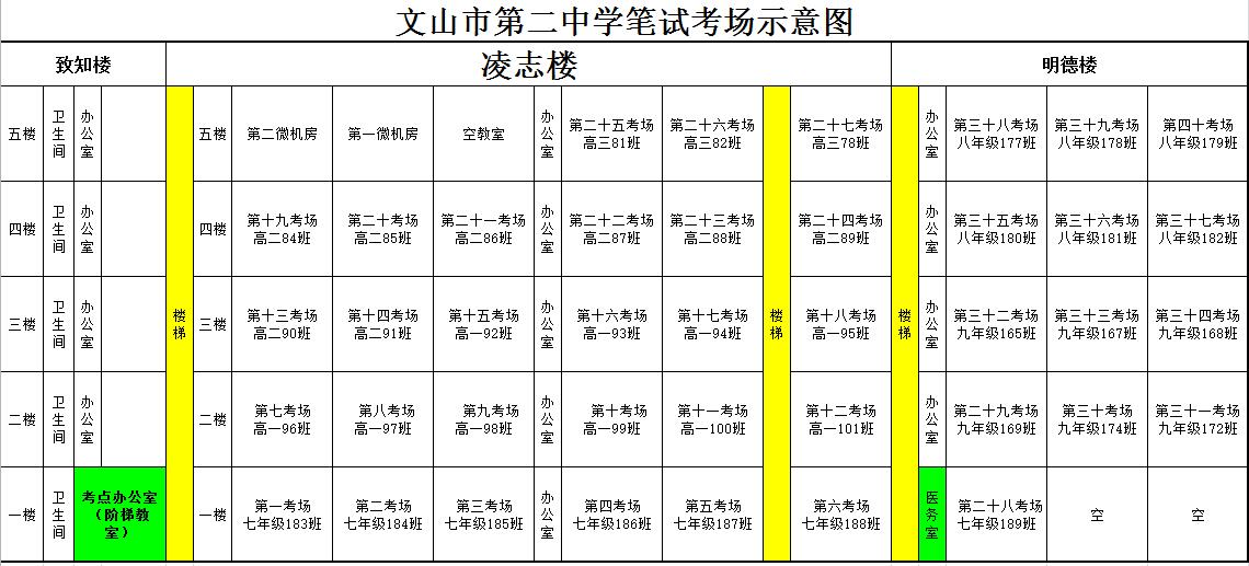 2017年文山市第二中學(xué)公務(wù)員考試考點考場分布示意圖
