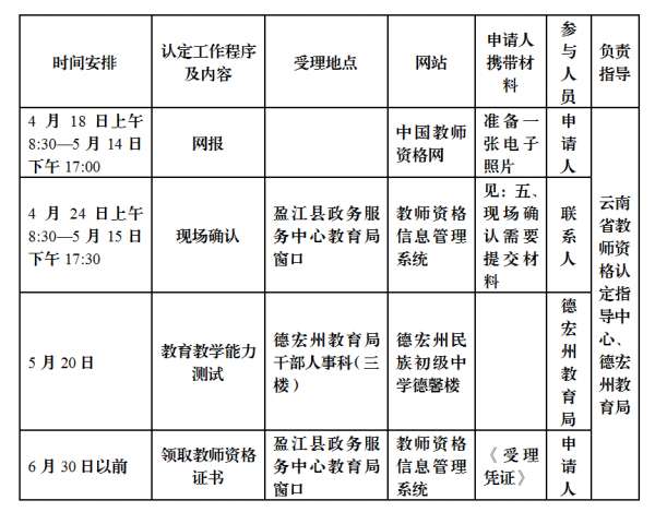 根據(jù)《云南省關(guān)于做好2017年教師資格制度實施工作的通知》(云教認(rèn)定【2017】4號)文件、《德宏州2017年春季教師資格認(rèn)定通知》要求,現(xiàn)將我縣開展2017年春季教師資格認(rèn)定申報工作通知如下: