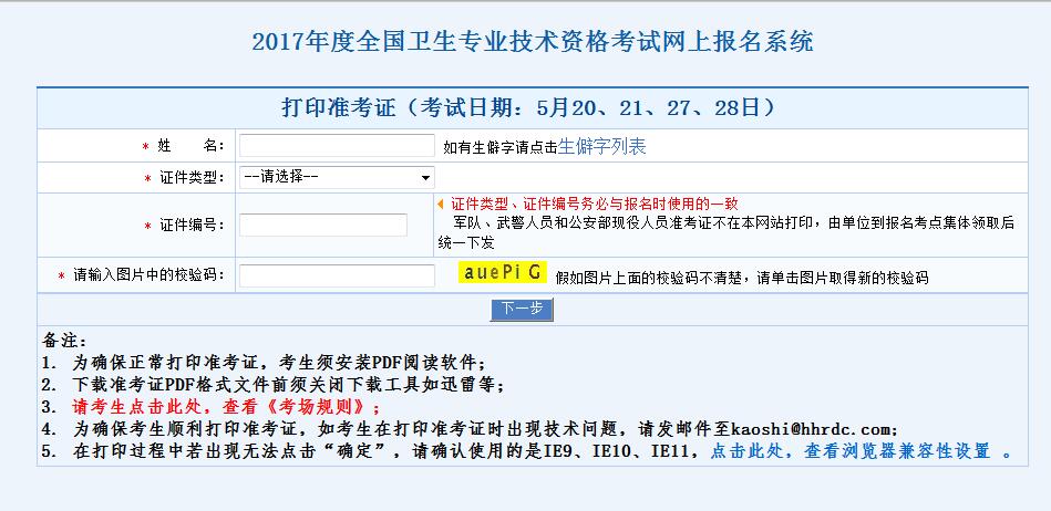 2017年全國(guó)衛(wèi)生專業(yè)技術(shù)資格考試準(zhǔn)考證打印入口